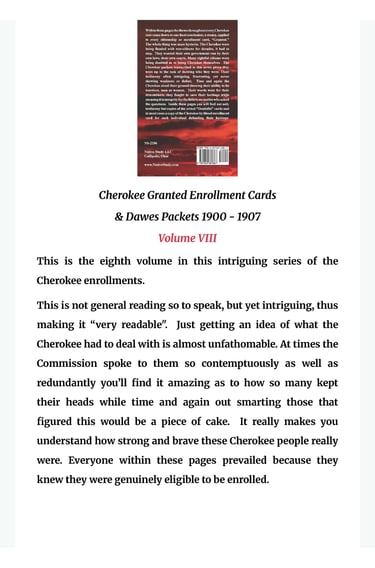 NEW BOOK Available!Click-NEW! ARRIVALS-below Cherokee Granted Enrollment Cards & Dawes Packets 1900 - 1907 Volume VIII