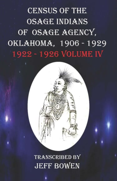 Within the remaining volumes you will find additional facts regarding large population changes within the Osage records transcribed. It was thought to be very important because of the growth that was noticed starting in 1923 and 1924. Within the Introduction a short supplement in the form of a book report can be found. It covers a memoir from one of the Osages’ infamous authors from that early period while adding reference materials in book form for the pleasure of learning who the Osage were.